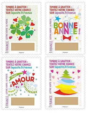 timbres à gratter, pour souhaiter ses voeux et faire gagner des beaux cadeaux.